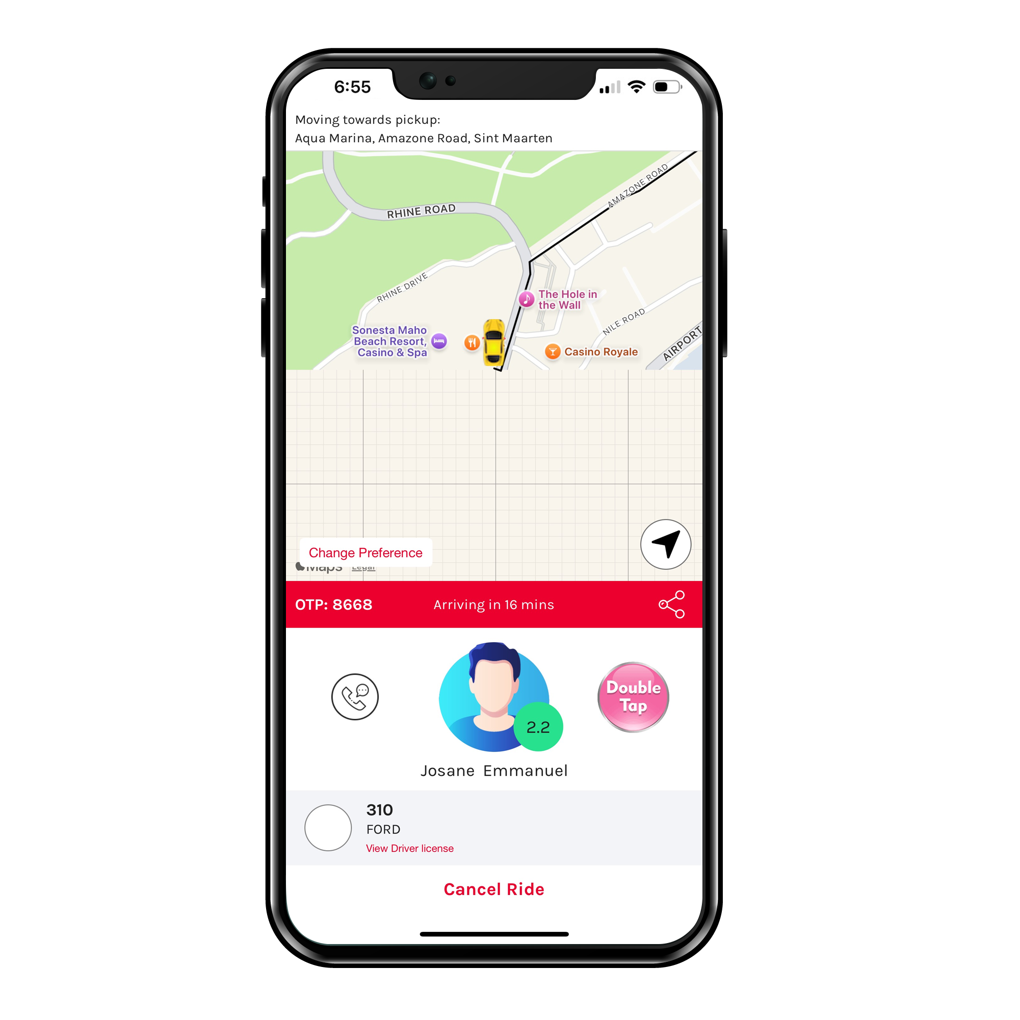 With our intuitive design and user-friendly app, you have the power to reach any destination you want across ST. Maarten. Have a look at the app screens below to see just how easy it is to book a ride, track your driver, and manage your ride.
